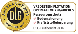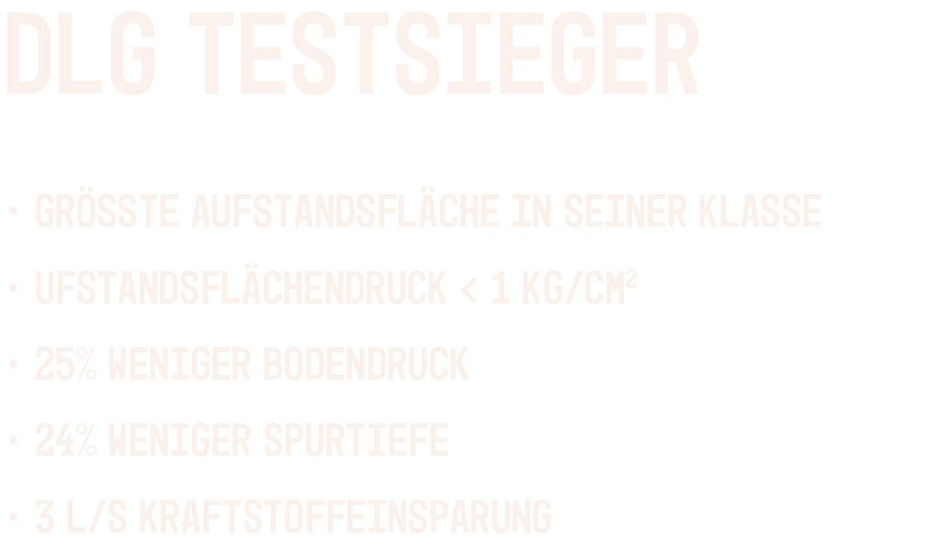 Laut DLG-Praxistests im Vergleich zum VF-Wettbewerbsreifen. Getestet wurde der Reifen VF 750/60 R 30.5 mit 7.100 kg Last und einem Reifendruck, für maximal 10 km/h Feldarbeit.