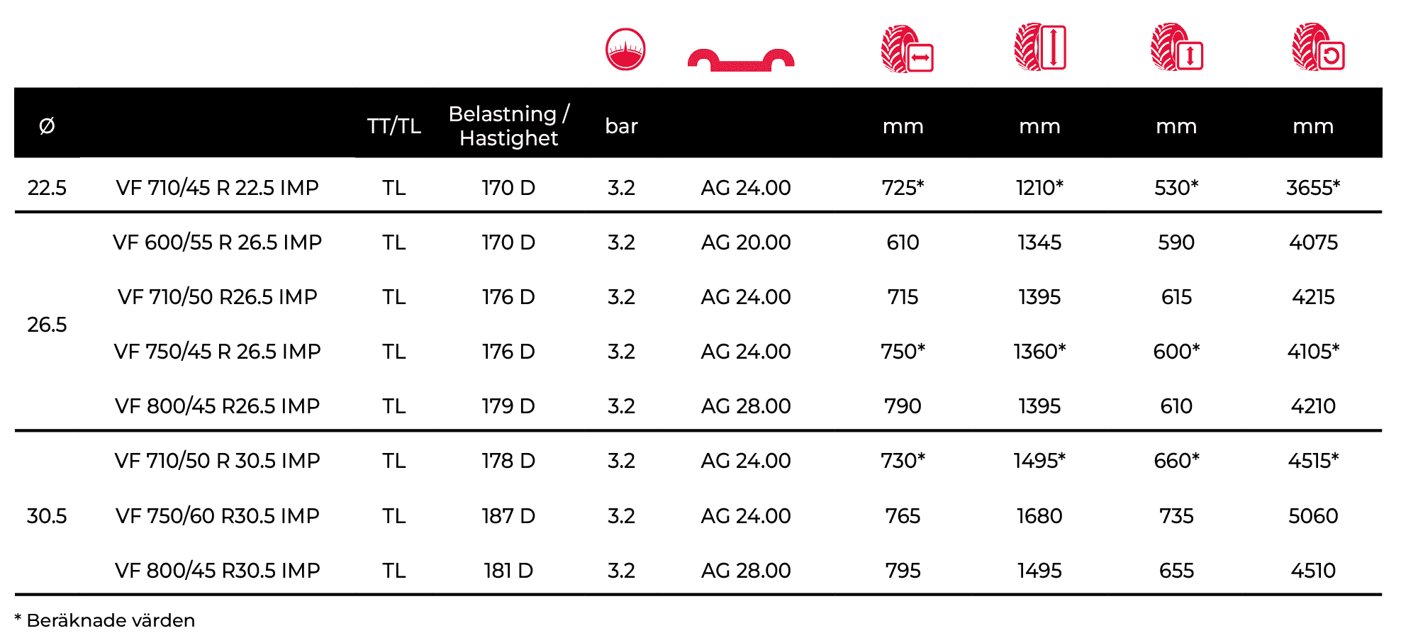 Enligt tester utförda av DLG i fält, jämfört med VF-konkurrentdäck. Däck testade VF 750/60 R 30.5 med 7.100 kg last och däcktryck justerat för max 10 km/h fältarbete (1,0 bar).