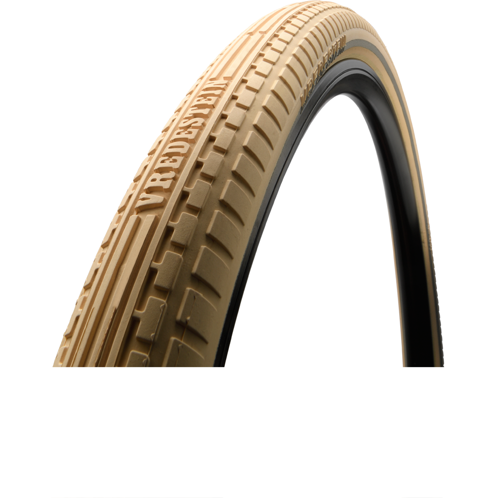 Ett autentiskt klassiskt däck med Vredesteins retro-logotyp på mönstret